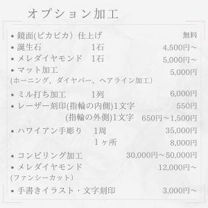 *遺骨リングの料金=指輪料金+オプション料金