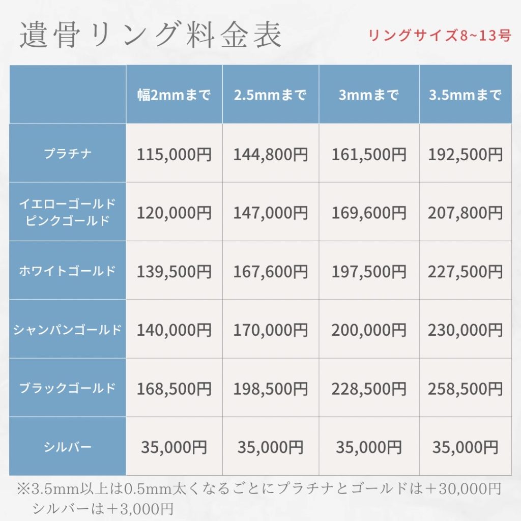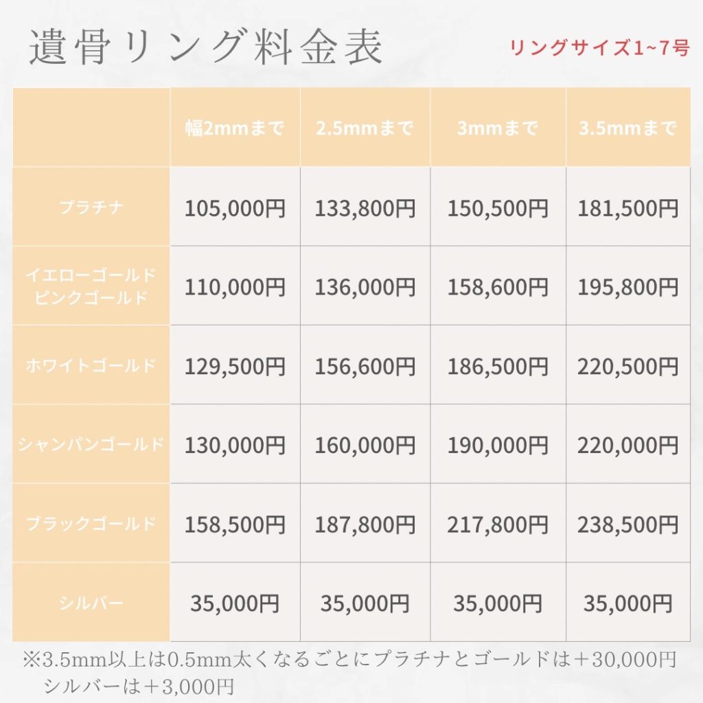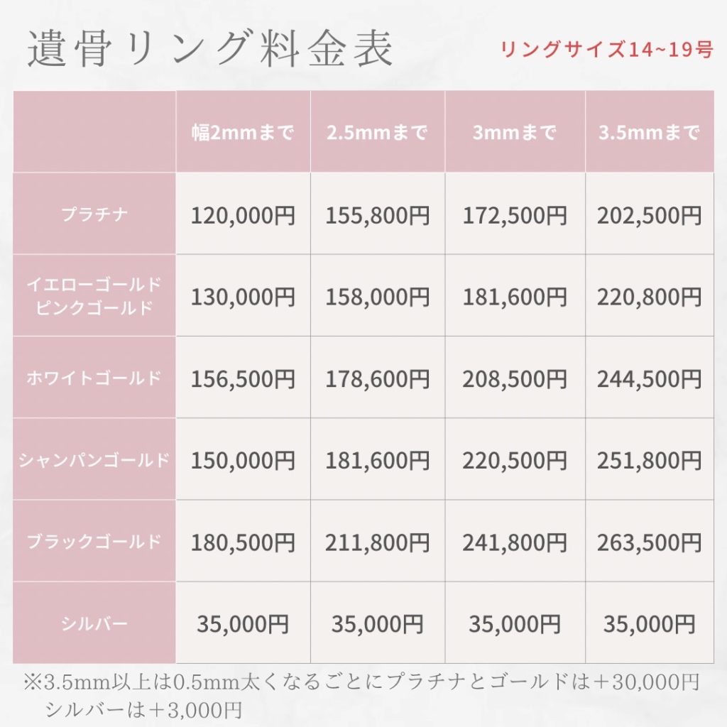 【遺骨リングの料金】料金は税込価格です